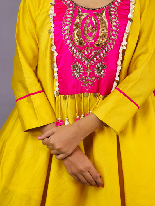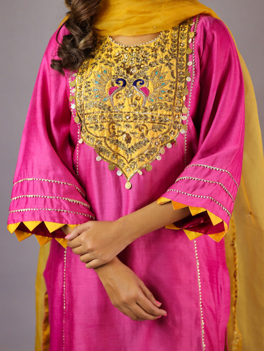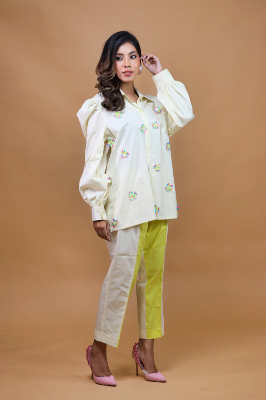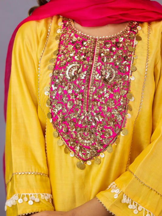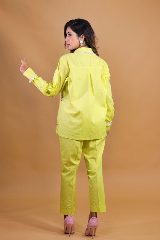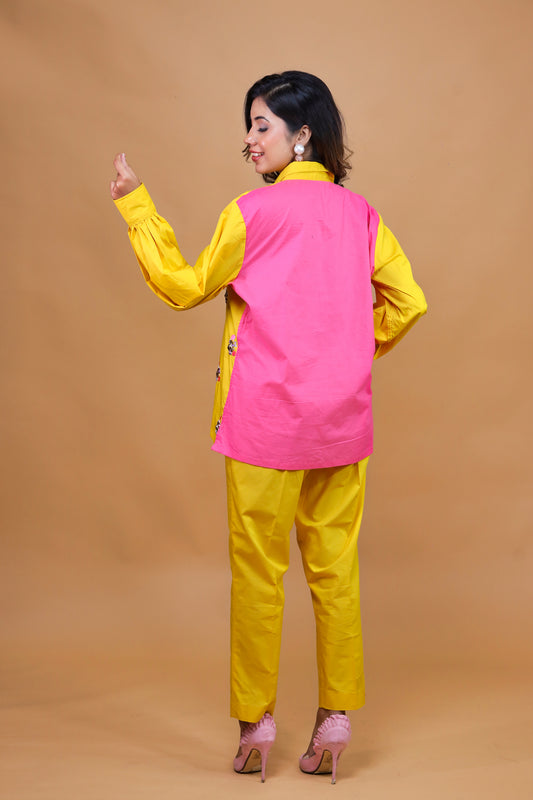 Sun Kissed Yellow With Hot Pink Shirt N Trouser Set