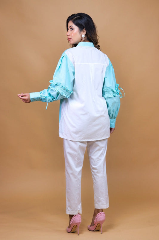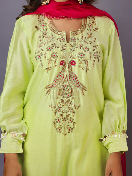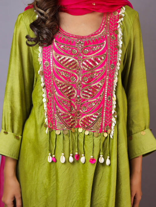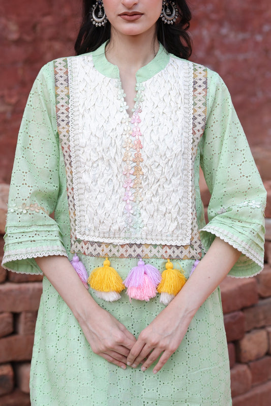 Pastel Green Chikankari Co-ord Set with Tassels & Mirror Yoke