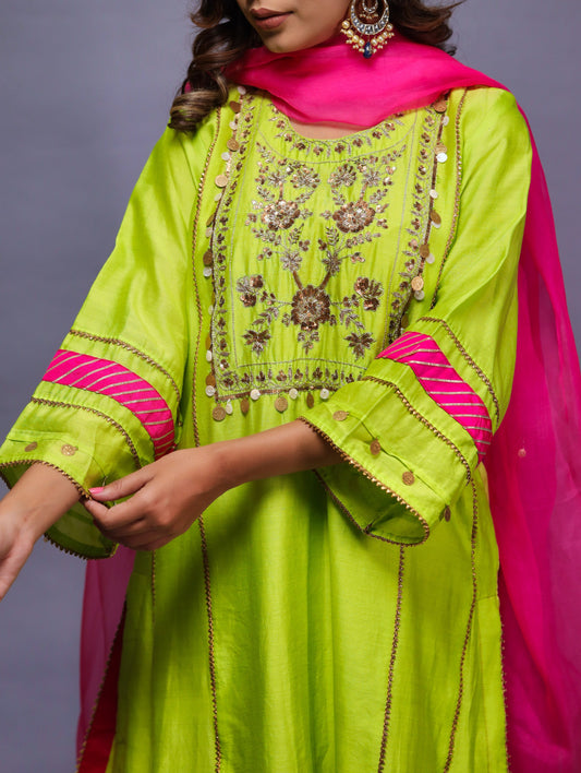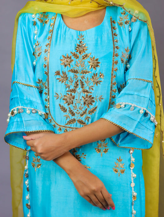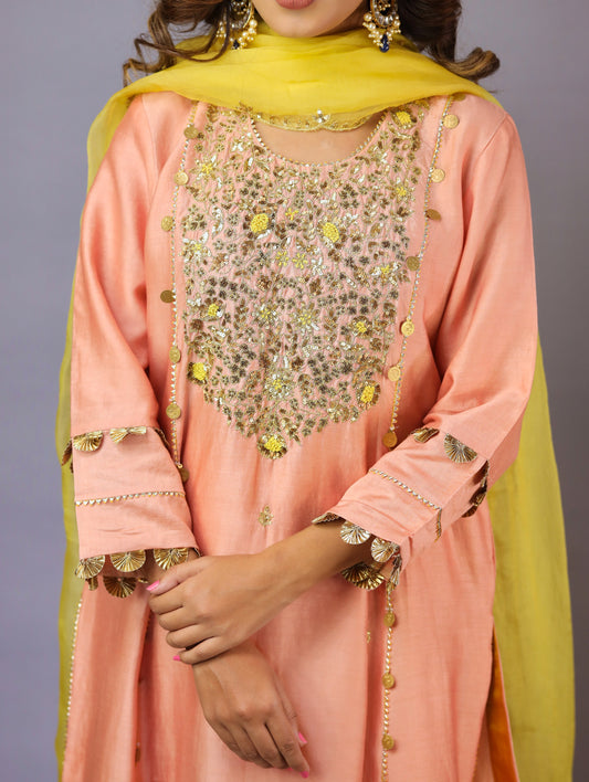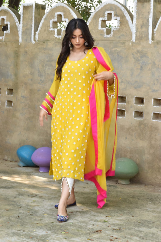 Mustard Pearls And Gotta Patti Pattern Kurta Set With Dupatta