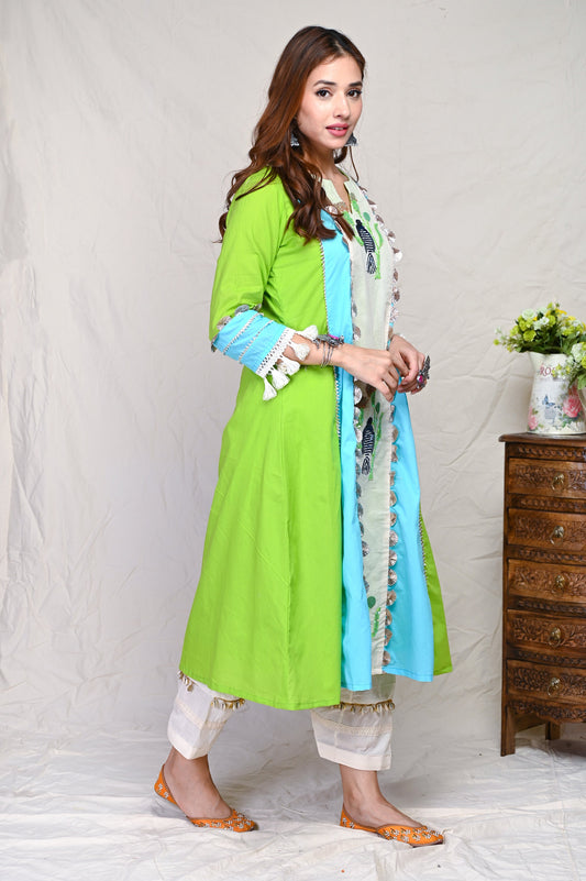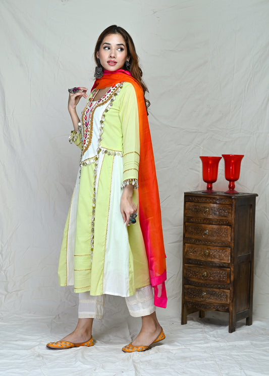 Green Gotta And Mirror Pattern Indian Wear Kurta Set