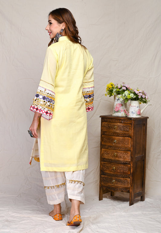 Mustard Pearls And Gotta Patti Pattern Kurta Set With Dupatta