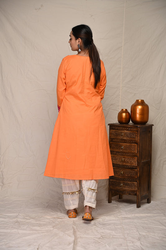 Indian Wear Multi Colored Cotton Suit With Orange Dupatta