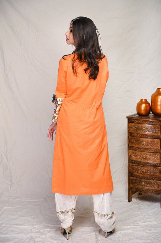 Ivory White Mirror Work Indian Wear Kurta Set With Orange Dupatta