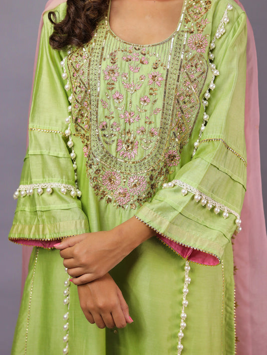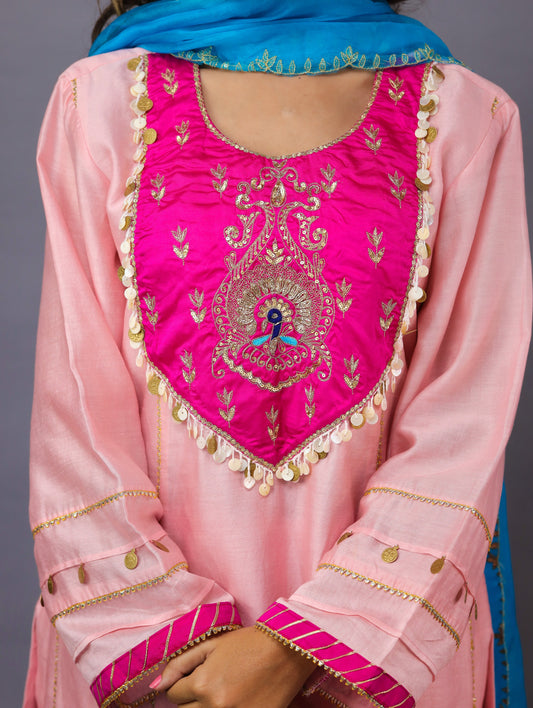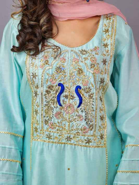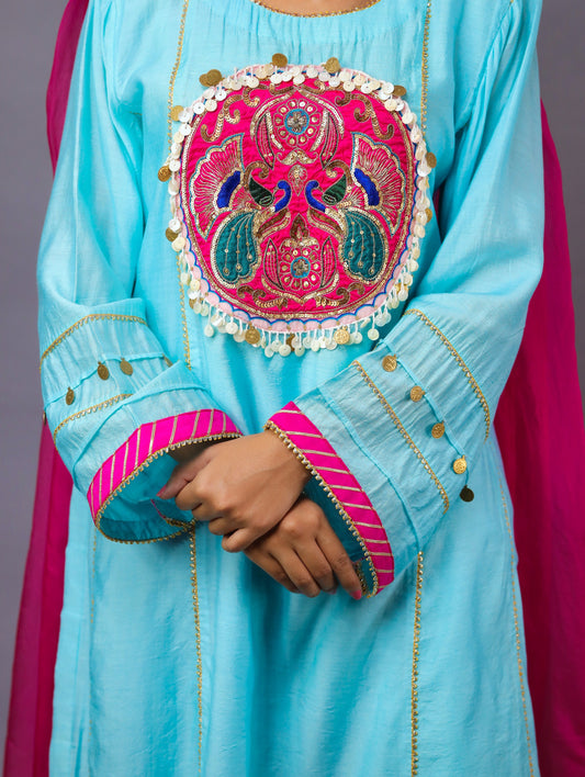 Sky Blue Kurta Set With Baby Pink Dupatta