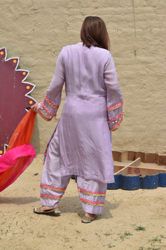 Mauve Kurta, Pants & Pink Dupatta In Organza Having Gotta Work