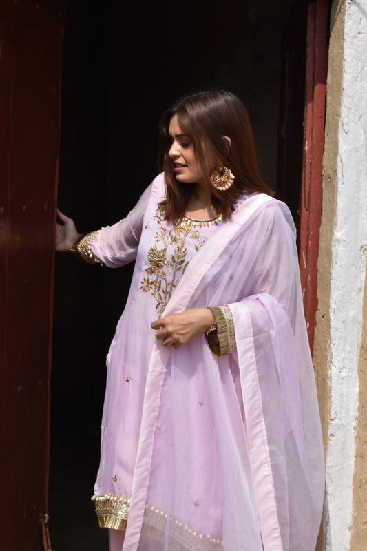 Liliac Kurta, Pants & Dupatta In Organza Having Gotta Work