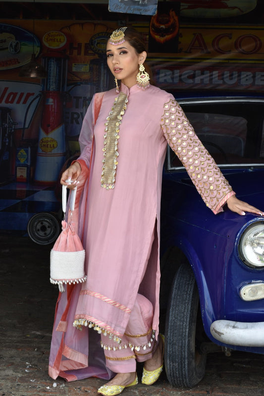 Pink Chikankari Co-ord with Mirror Embroidered Yoke